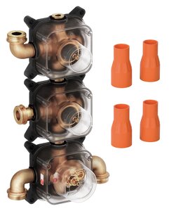 Med én indbygningsboks til henholdsvis vask og brus er Damixas løsning både enkel og fleksibel. Indbygningsboksen kan nemlig kombineres med alle yde dele, så hvis du efter en årrække ønsker at skifte farve eller design, er det helt enkelt at skrue de nye elementer på. Alle sliddele kan skiftes udefra, og vi opretholder et komplet lager af reservedele, der matcher produkternes lange levetid.
