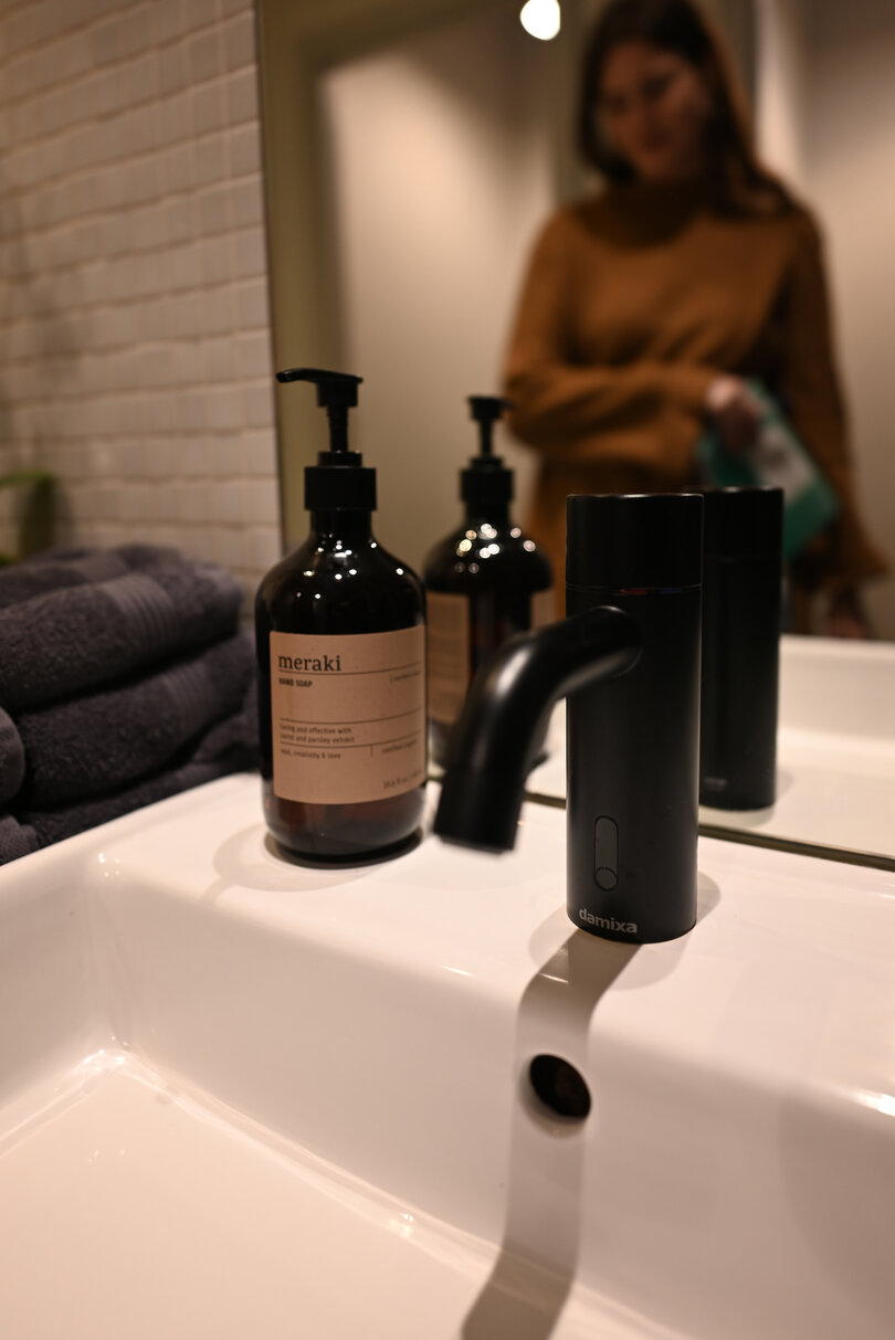 Foruden den berøringsfrie Silhouet Touchless Pro, så har Thomas Pasfall også valgt berøringsfrie håndvaskmodeller til restaurantens toiletter. ”Der var ingen tvivl om, at jeg skulle have vandhaner der ikke krævede fysisk berøring på vores toiletter. At de så samtidig kommer i flotte overflader og derfor matcher ind i stilen, er virkelig en bonus, og det var derfor valget faldt på Damixa. Vi har haft flere gæster, som har spurgt ind til, hvor vandhanerne er fra.”
