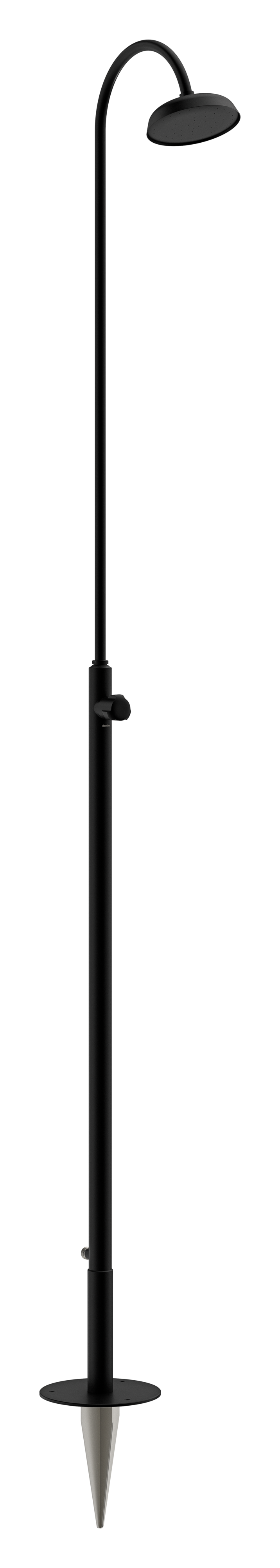 En fritstående udendørs bruser i Midnight Black, designet til moderne uderum, hvor funktion og æstetik går hånd i hånd. Den dybe, matte overflade tilfører et markant og arkitektonisk udtryk, der skaber kontrast og karakter i både grønne omgivelser og minimalistiske terrasser.