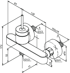 Vægarmatur bruser krom