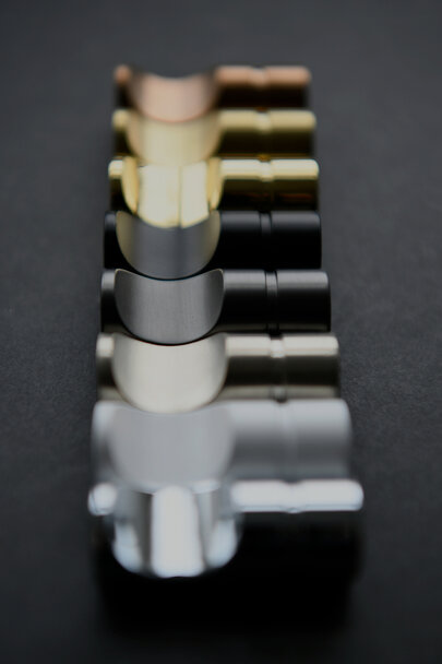 Silhouet fås i hele otte farver: Krom, stål, børstet messing, messing, kobber, mat sort, mat hvid og den helt nye grafitgrå.